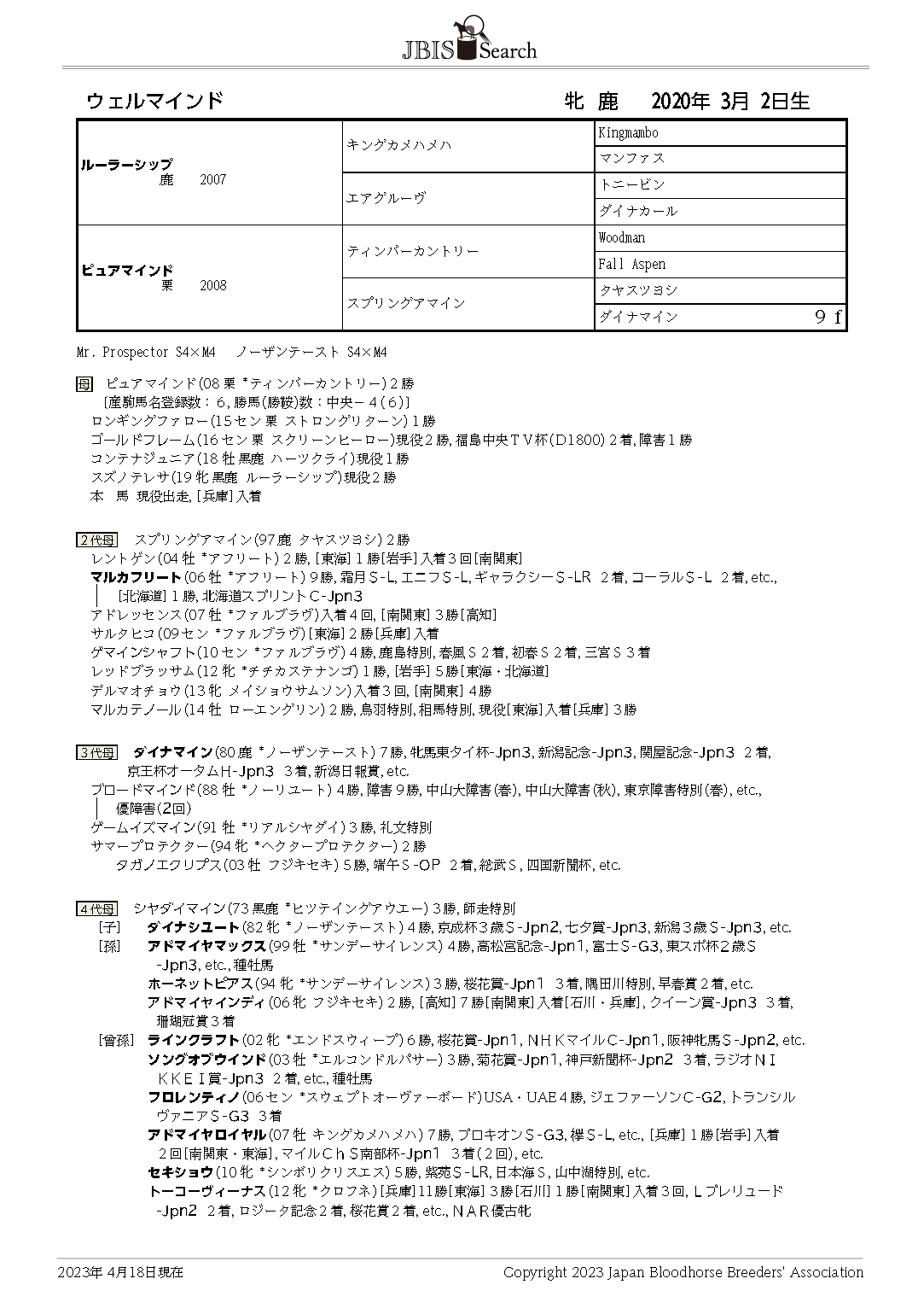 ウェルマインド Wellmined 牝 鹿毛 2020年3月2日生 3歳