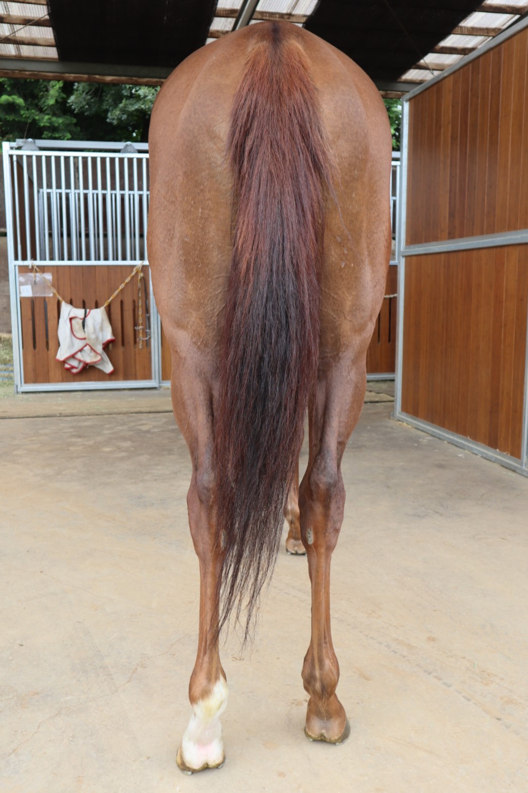 体重は412㎏~416㎏を推移。まだ成長途上で、ラストにワンパンチ足りないレースぶりに映りますが、スタートを含め内容自体には進境がうかがえます。5月24日のWコースでラスト1ハロン11秒5を計時するなど水準の脚力は示しており、地方競馬で使いつつ変わり身を待てば、コンスタントに活躍している母系からも飛躍が望めるのではないでしょうか。