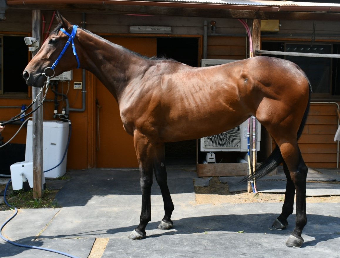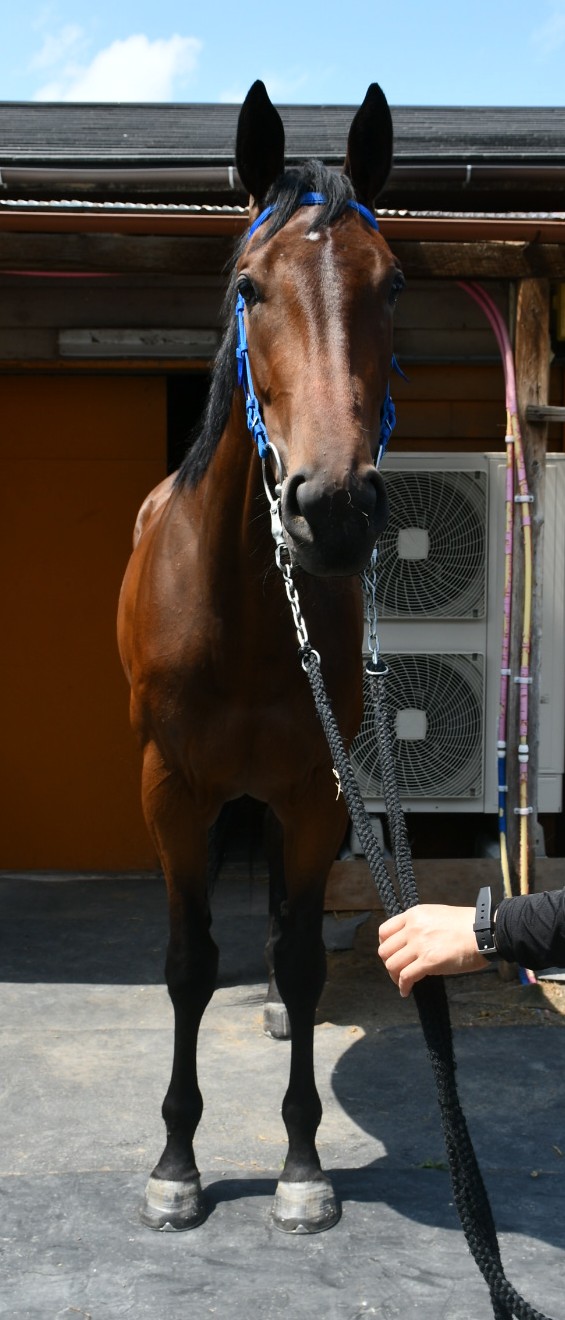 4月中旬から調教の負荷を徐々に強めて行き、5月24日の船橋競馬・能力検査に合格したものの、能力検査での内容(一杯)を見ると、これからの仕上げに時間を要すことから、残念ではありますが、デビューを断念し、このタイミングで出品させていただきます。環境を変えることで大きな変化をもたらすこともあると思います。新たなオーナーの下、新天地での活躍をお祈りいたします。