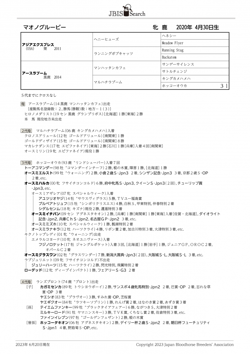 マオノグルービー Maono Groovy 牝 鹿毛 2020年4月30日生 3歳