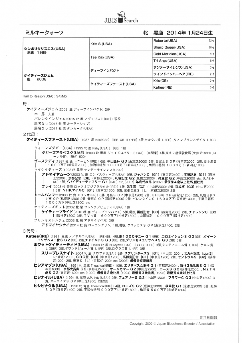 ミルキークォーツ Milky Quartz 牝 黒鹿毛 2014年1月24日生 3歳