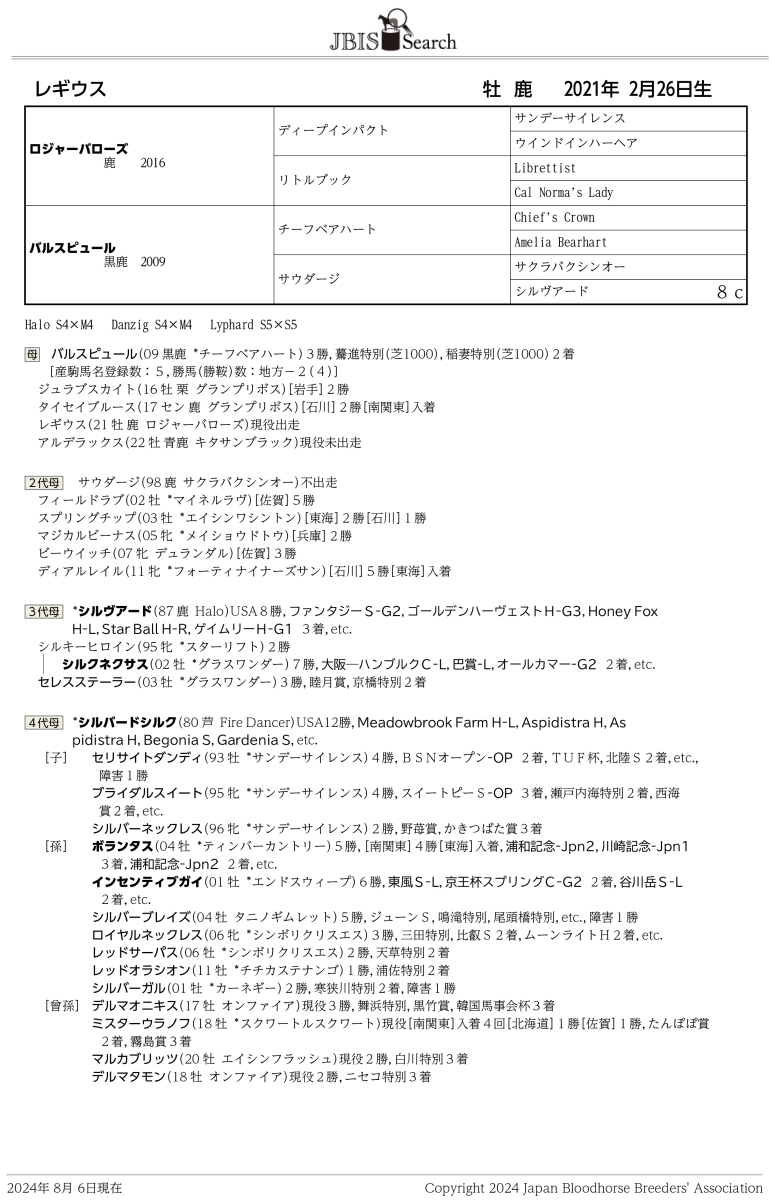 【入札時の注意事項】(必ずご確認ください) ※サラブレッドオークションでの落札馬は、原則として5日以内に在厩場所より引き渡しをさせていただきます。引き続き、飼養管理継続をご希望される場 合はオークション事務局までお問い合わせ下さい。 ※落札馬の引き渡しにかかる必要経費は、落札者様のご負担となります。 ※引き取り前に、現地での獣医検査を行うことを推奨いたします。出品馬の現況は、出品者による申告であり、引渡し時点での状況を保証している ものではありません。なお、この際の獣医検査にかかる費用は、落札者様のご負担となります。 ※実馬を見学いただくことが可能です。事前に申し込みが必要ですので、ご希望の方はオークション事務局までお問い合わせ下さい。 |