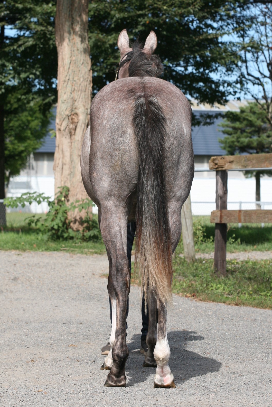 本馬は、北海道セプテンバーセールに上場しましたが、主取りとなりましたので、サラブレッドオークションへ出品とさせていただくこととしました。早い時期から活躍し成長力にも富むゴールドシップ産駒です。