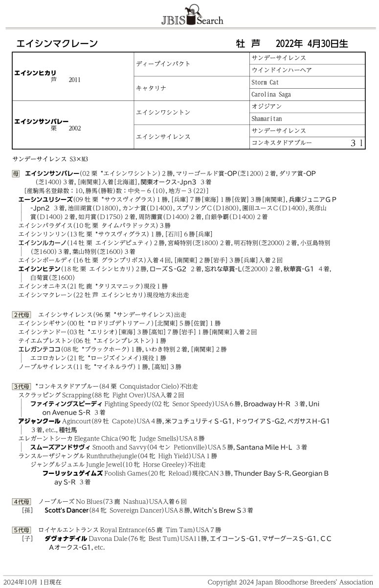 エイシンマクレーン 牡2歳 ※地方競馬 在籍(未出走)