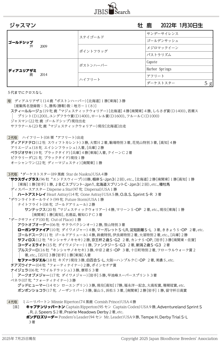【入札時の注意事項】(必ずご確認ください) ※サラブレッドオークションでの落札馬は、原則として5日以内に在厩場所より引き渡しをさせていただきます。引き続き、飼養管理継続をご希望される場合は オークション事務局までお問い合わせ下さい。 ※落札馬の引き渡しにかかる必要経費は、落札者様のご負担となります。 ※引き取り前に、現地での獣医検査を行うことを推奨いたします。出品馬の現況は、出品者による申告であり、引渡し時点での状況を保証しているものではありません。 なお、この際の獣医検査にかかる費用は、落札者様のご負担となります。 ※実馬を見学いただくことが可能です。事前に申し込みが必要ですので、ご希望の方はオークション事務局までお問い合わせ下さい。 |