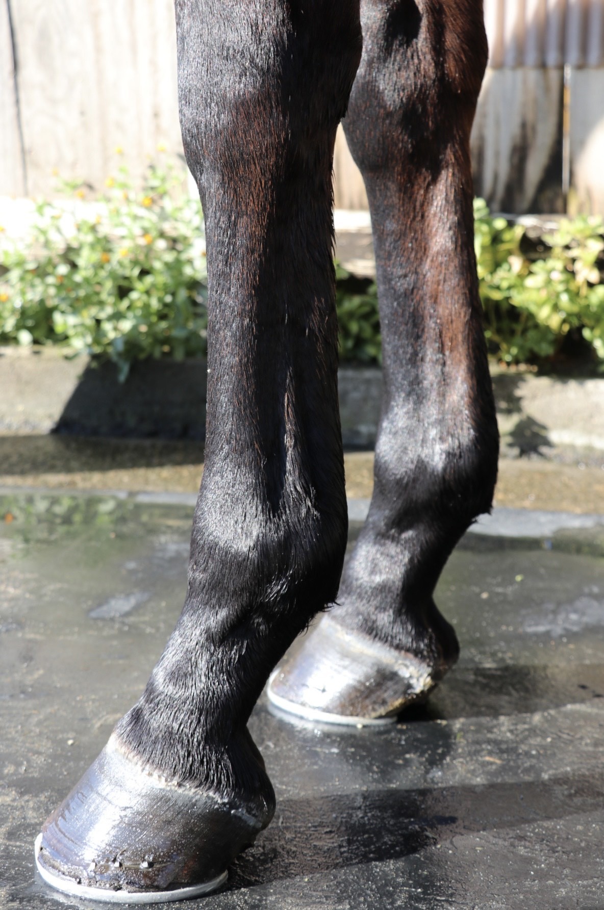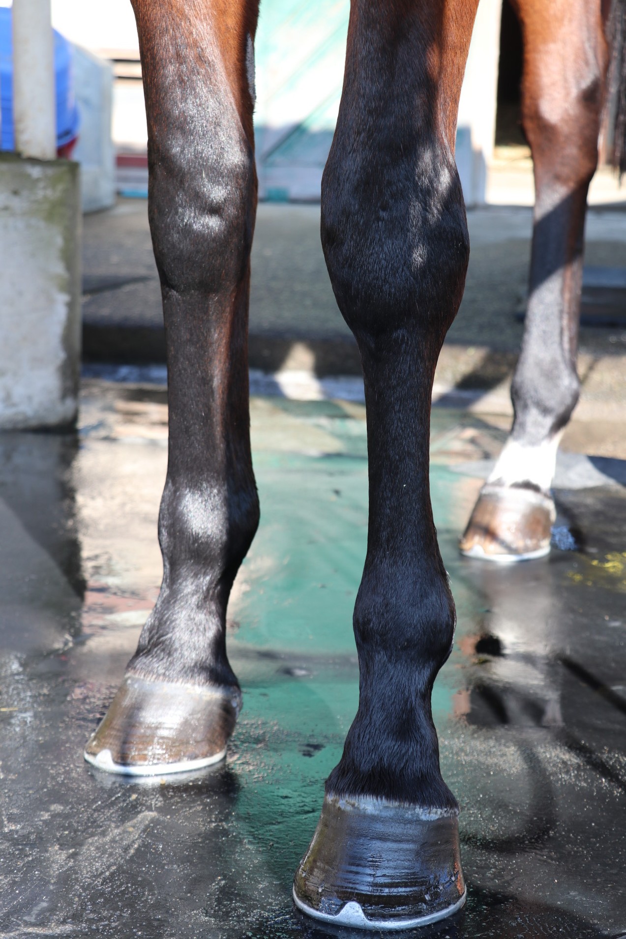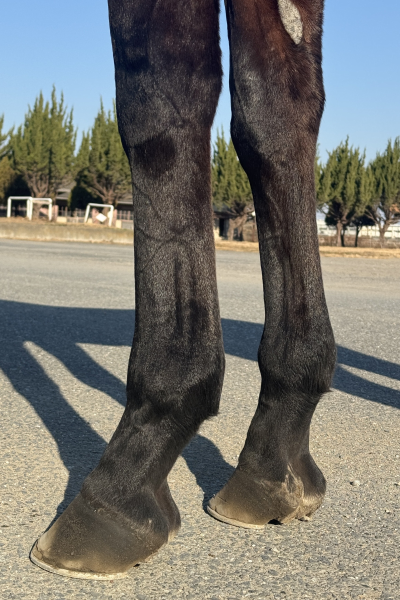 10月初旬までBTCの坂路コースで3ハロン15秒まで乗り込んでいましたが、10月初旬に北海道の育成牧場で左前に腫れと熱感を確認し検査をした所、左前屈腱炎(3%)と診断され、こちらに入厩してきました。