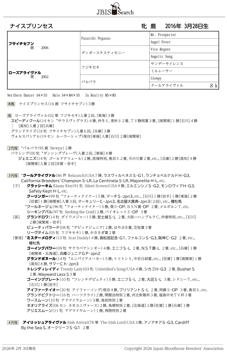 ナイスプリンセス Nice Princess 牝 鹿毛 2016年3月28日生 10歳