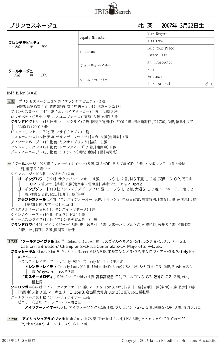 | 父:フレンチデピュティ 母:クールネージュ 母の父:フォーティナイナー