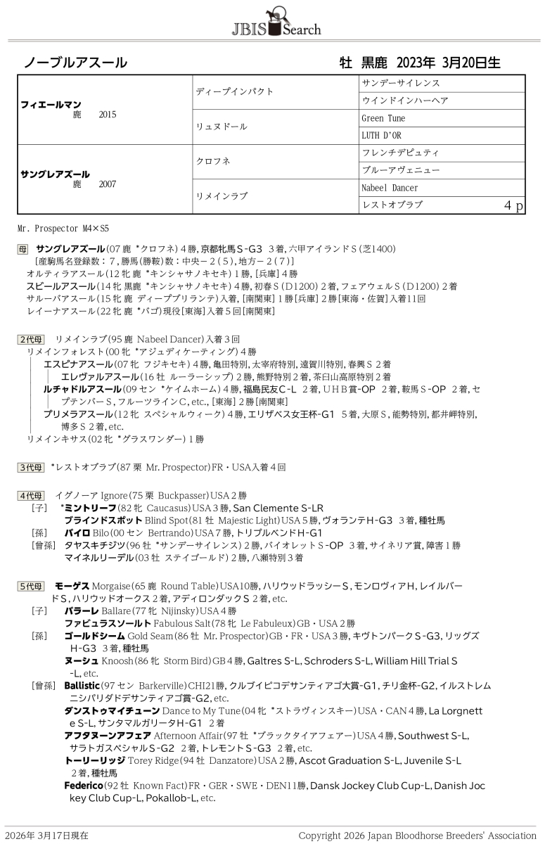 ノーブルアスール Noble Azul  牡  黒鹿毛  2023年3月20日生 3歳