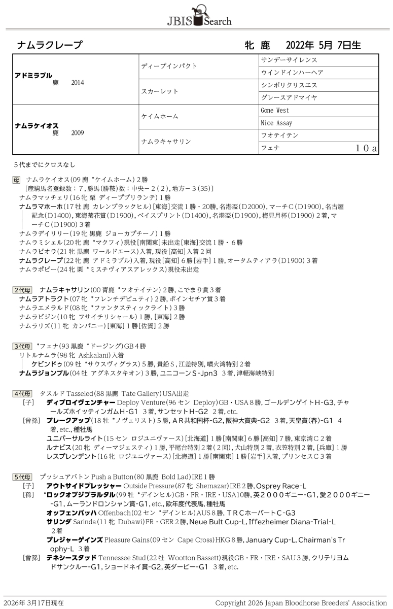 TEL: 03-3527-2450 (出品者: サラブレッドオークション事務局)