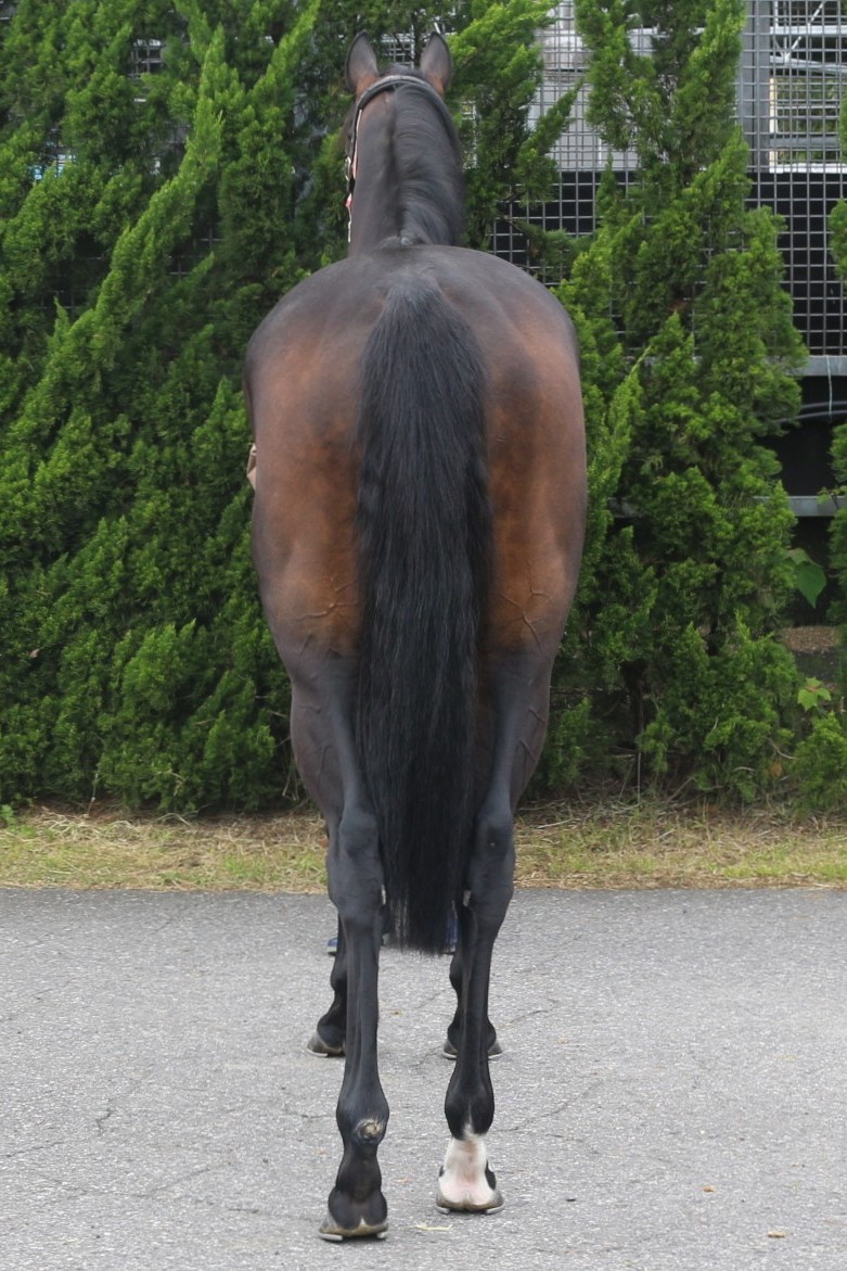初ダートの前走はキックバックを嫌がって走り切れていませんでした。もっとも勝ち切るまでには時間がかかりそうであり、このたびのオークションへ出品いたしました。