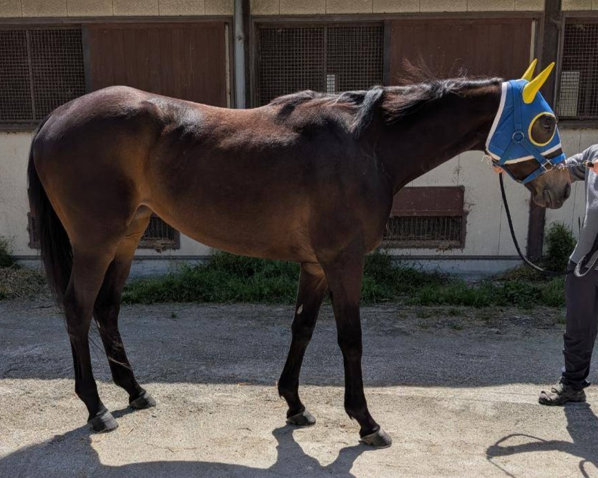 ※2026年3月23日に園田競馬場西脇(馬場状態:重)にて発走検査を受検し、ダ1200mを1.26.9で走破、合格しています。(馬体重433kg)。