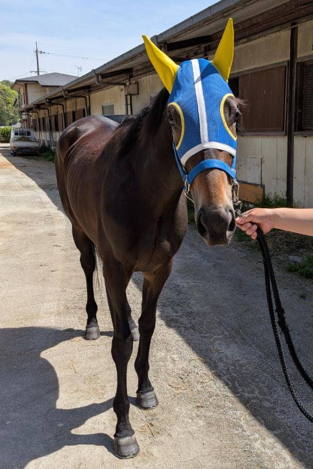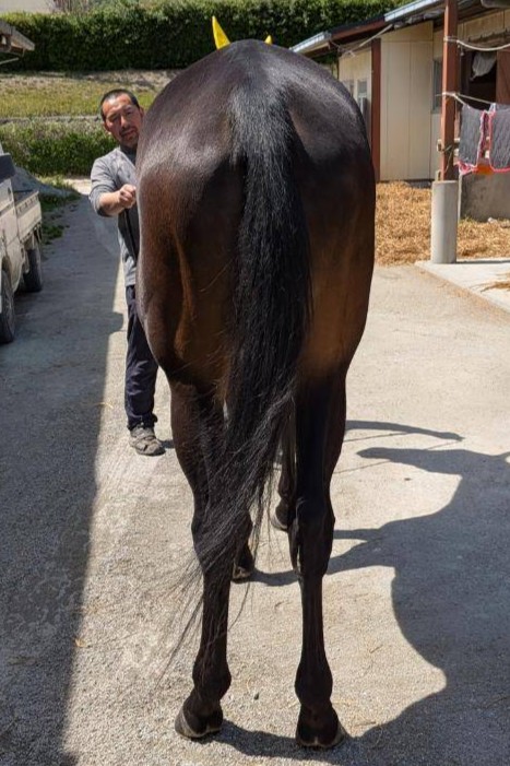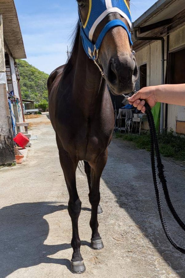 ※2026年4月20日に園田競馬場西脇(馬場状態:良)にて能力検査を受検し、ダ1200mを1.26.5で走破、不合格となりました。(馬体重426kg)。