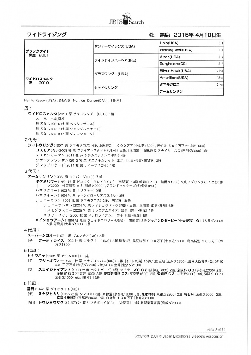 ワイドライジング Wide Rising 牡 黒鹿毛 2015年4月10日生 3歳