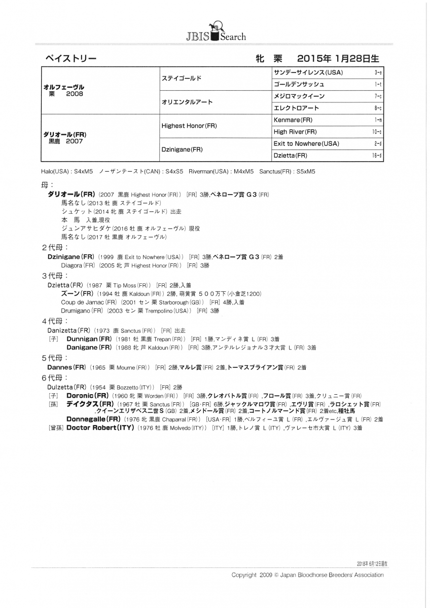 | 父:オルフェーヴル 母:ダリオール 母の父:Highest Honor