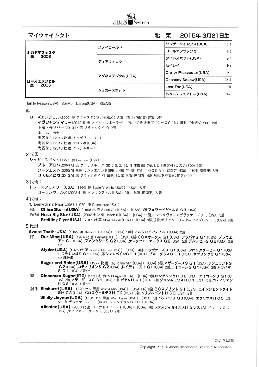 | 父:ナカヤマフェスタ 母:ローズエンジェル 母の父:アグネスデジタル