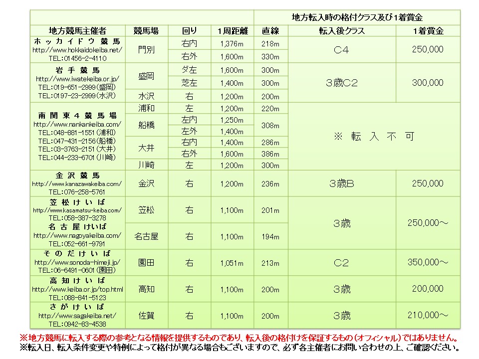 ※南関東4競馬場への転入はできません。