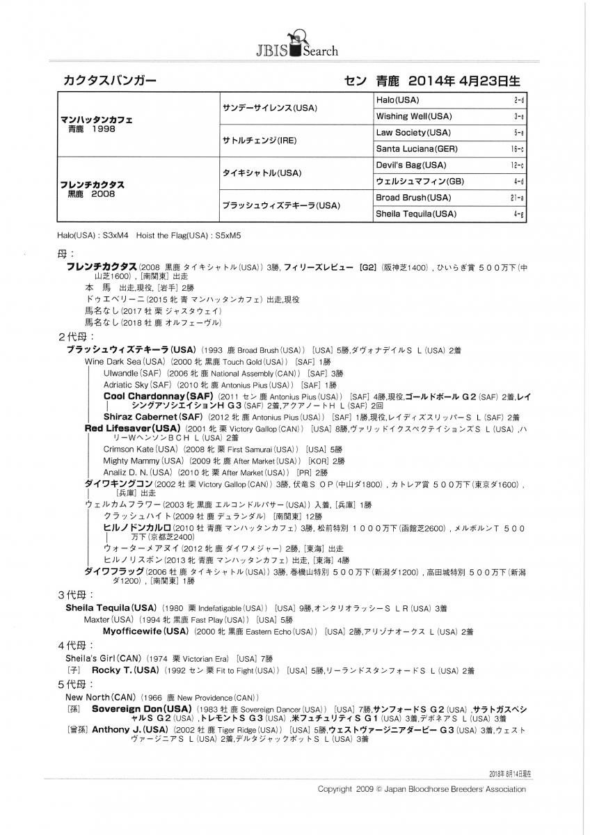 カクタスバンガー Cactus Banger セン 青鹿毛 2014年4月23日生 4歳