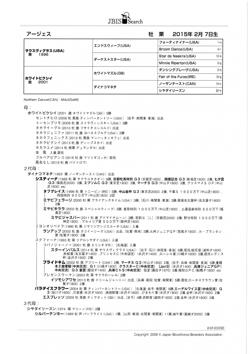 アージェス Urges 牡 栗毛 2015年2月7日生 3歳