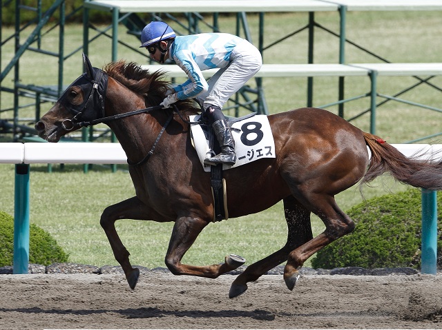 本馬は大型馬ということもあって、デビューを迎えたのは3歳4月の未勝利戦。それでも使いながら良化を示し、3戦目の中京ダート1200m戦では最内から鋭く伸びて、勝ち馬とはタイム差なし(ハナ+クビ差)の3着。勝ち上がりまであと一歩のところまで来ていました。