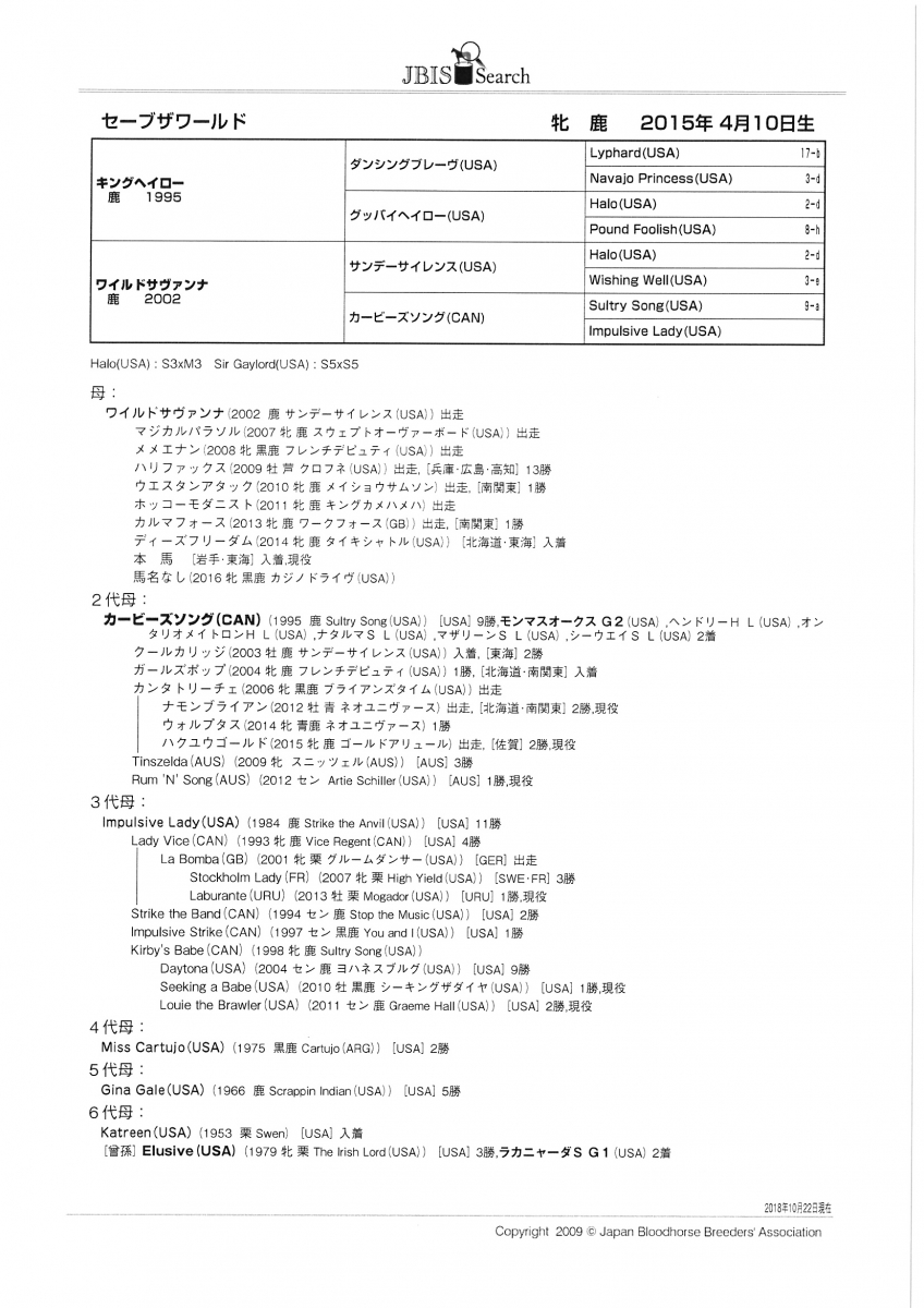 | 父:キングヘイロー 母:ワイルドサヴァンナ 母の父:サンデーサイレンス