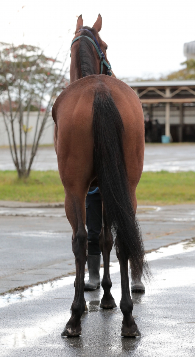 盛岡ではオーナーの要望もあり芝のレースを中心に使ってきましたが、本質的には小回りのダートが向いているのではないでしょうか。この秋は例年以上に中央からの入着馬が多く移籍してきたこともあり苦戦続きでしたが、休養前の内容を踏まえると相手関係がもう少し楽になる競馬場へ移籍させればチャンスはあるはずです。ワンペースで切れるタイプではありませんが、まだ体全体の筋肉が付き切っていないので成長途上の感もありますし、5連闘してもケロッとしているように丈夫さが何よりのセールスポイント。一気に使い込んだのでさすがに馬体は細く映りますが、飼い食いが極端に落ち込むこともなく環境の変化には強いタイプですので、新天地での活躍を期待しています(盛岡競馬・橘友和調教師)