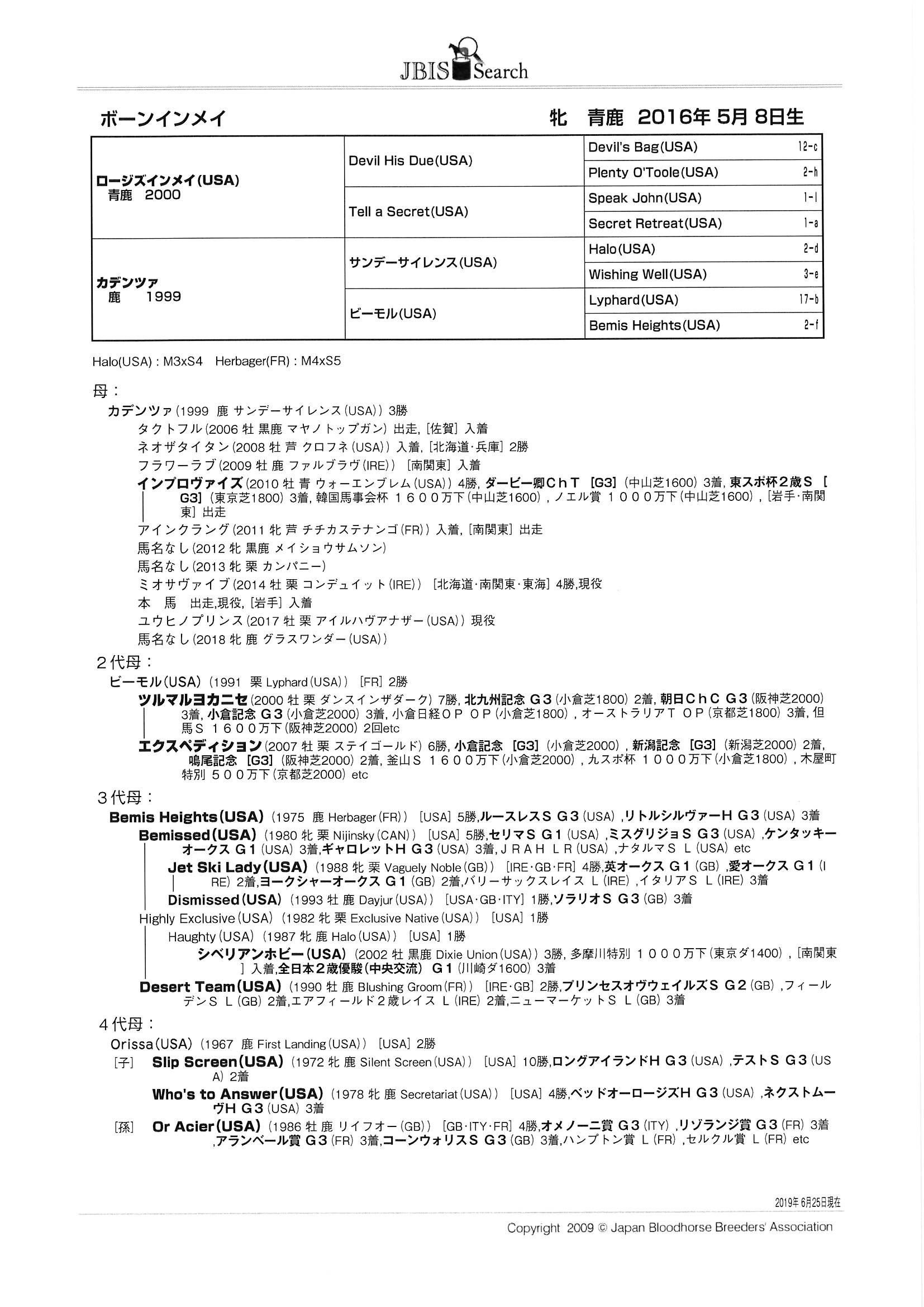 ボーンインメイ Born in May 牝 青鹿毛 2016年5月8日生 3歳