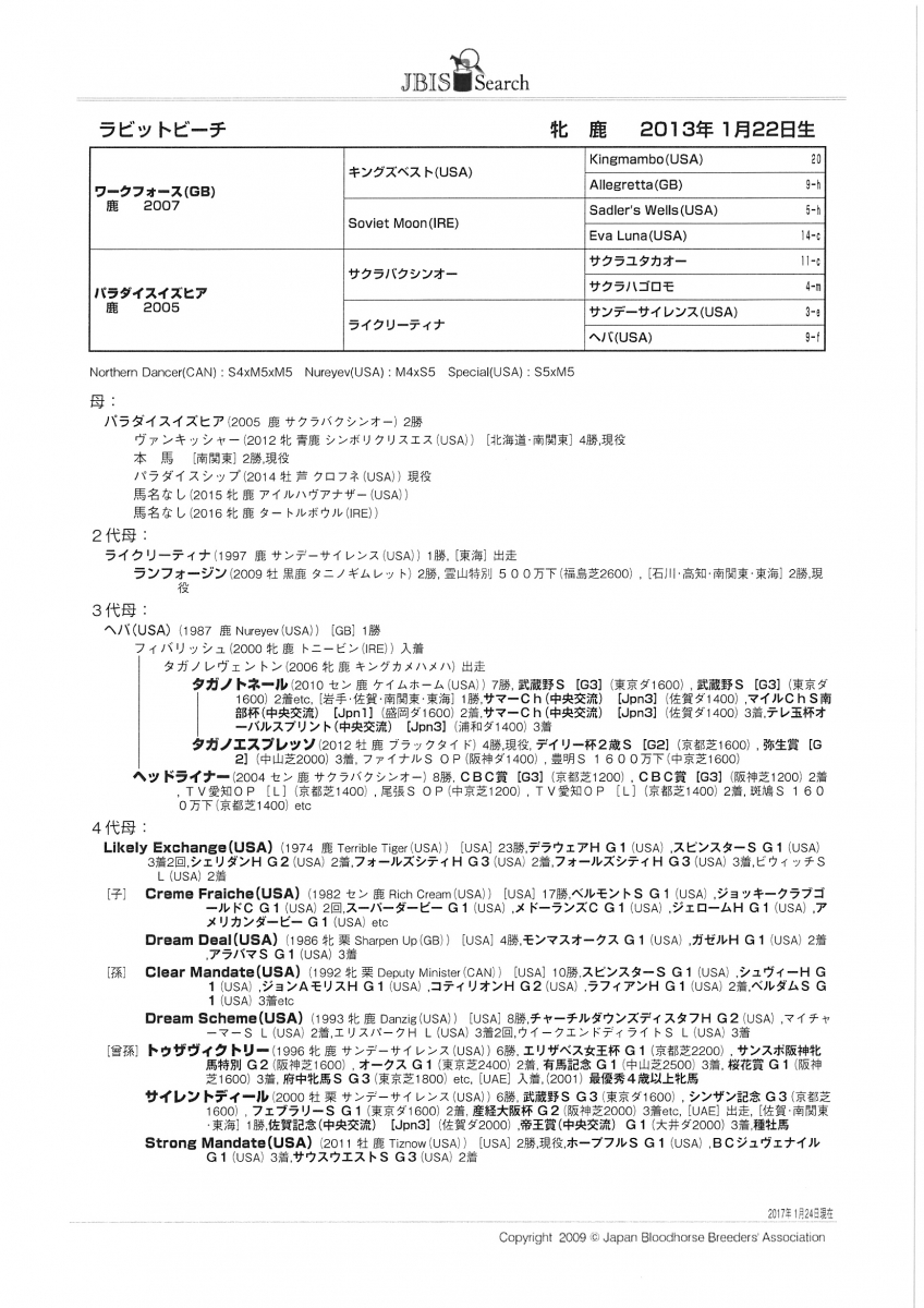 ラビットビーチ Rabbit Beach 牝 鹿毛 2013年1月22日生 4歳