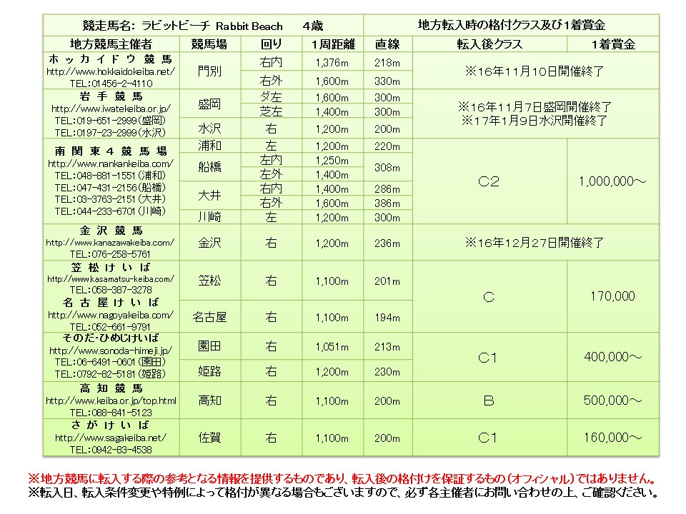 ラビットビーチ Rabbit Beach 牝 4歳 ※地方競馬 在籍