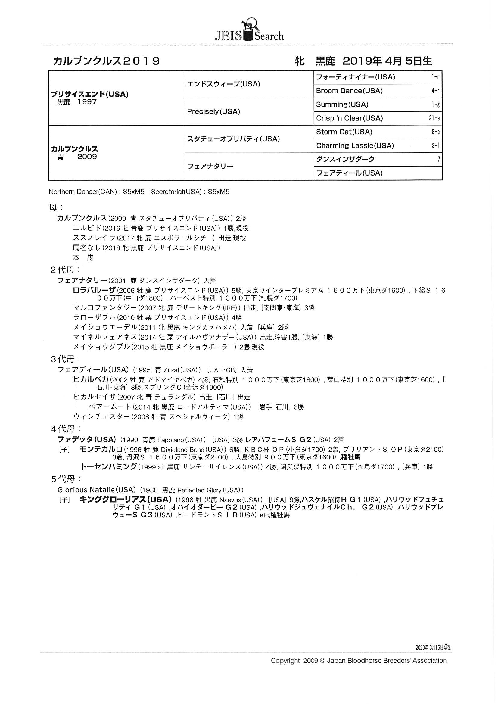 | 父:プリサイスエンド 母:カルブンクルス 母の父:スタチューオブリバティ