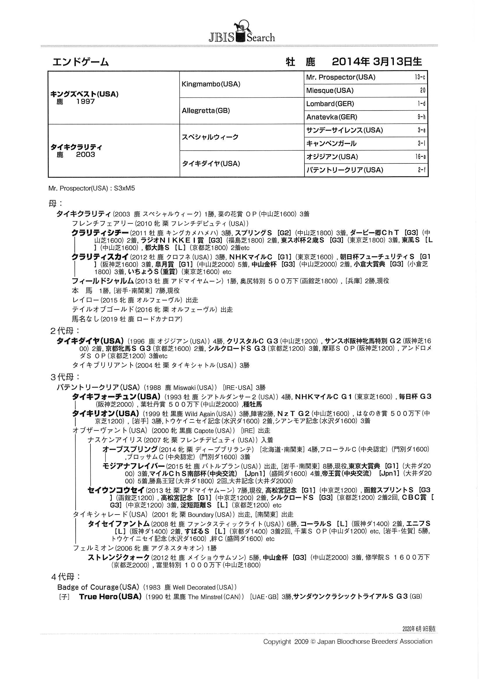 エンドゲーム Endgame 牡 鹿毛 2014年3月13日生 6歳