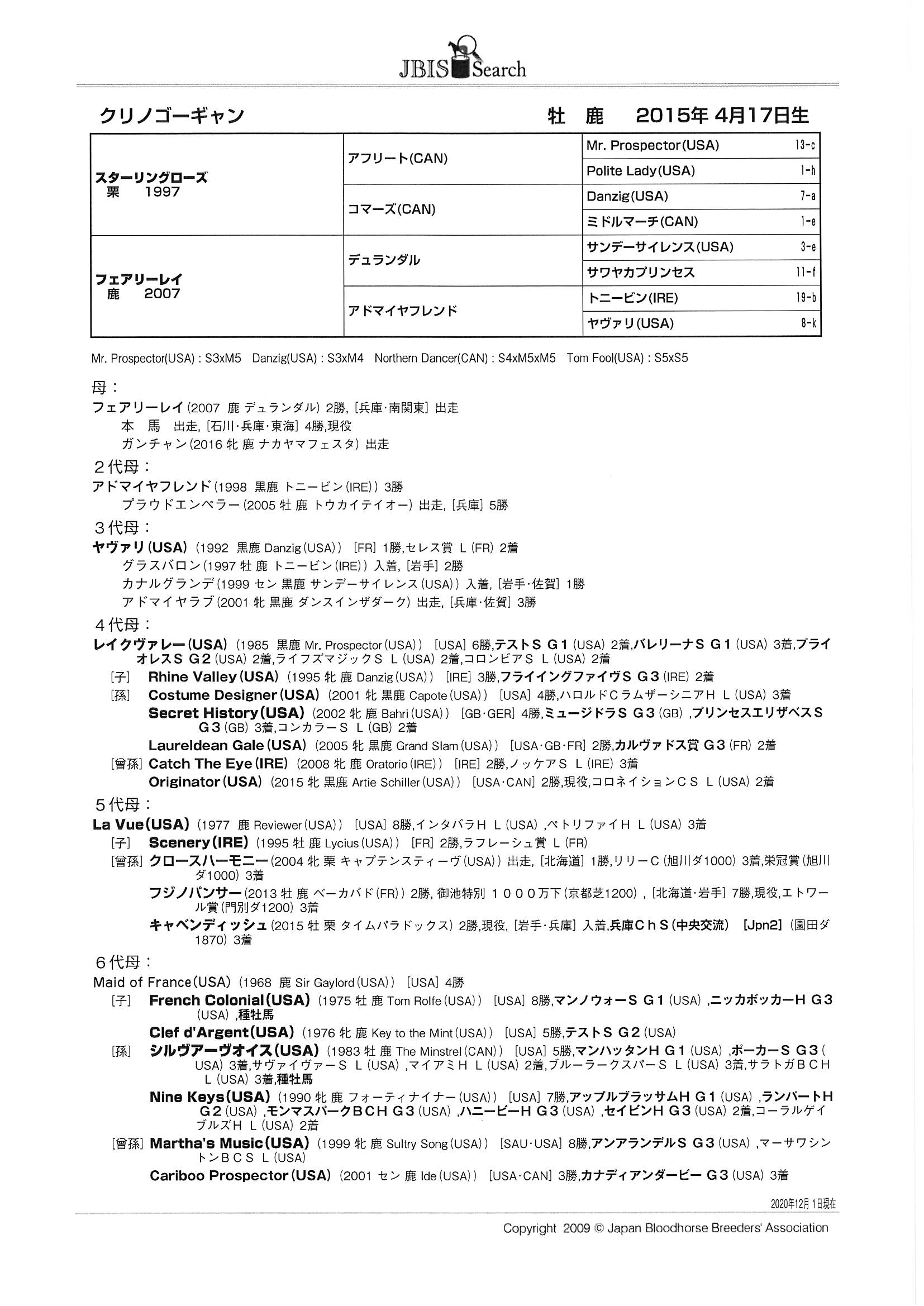 クリノゴーギャン Kurino Gauguin 牡 鹿毛 2015年4月17日生 5歳