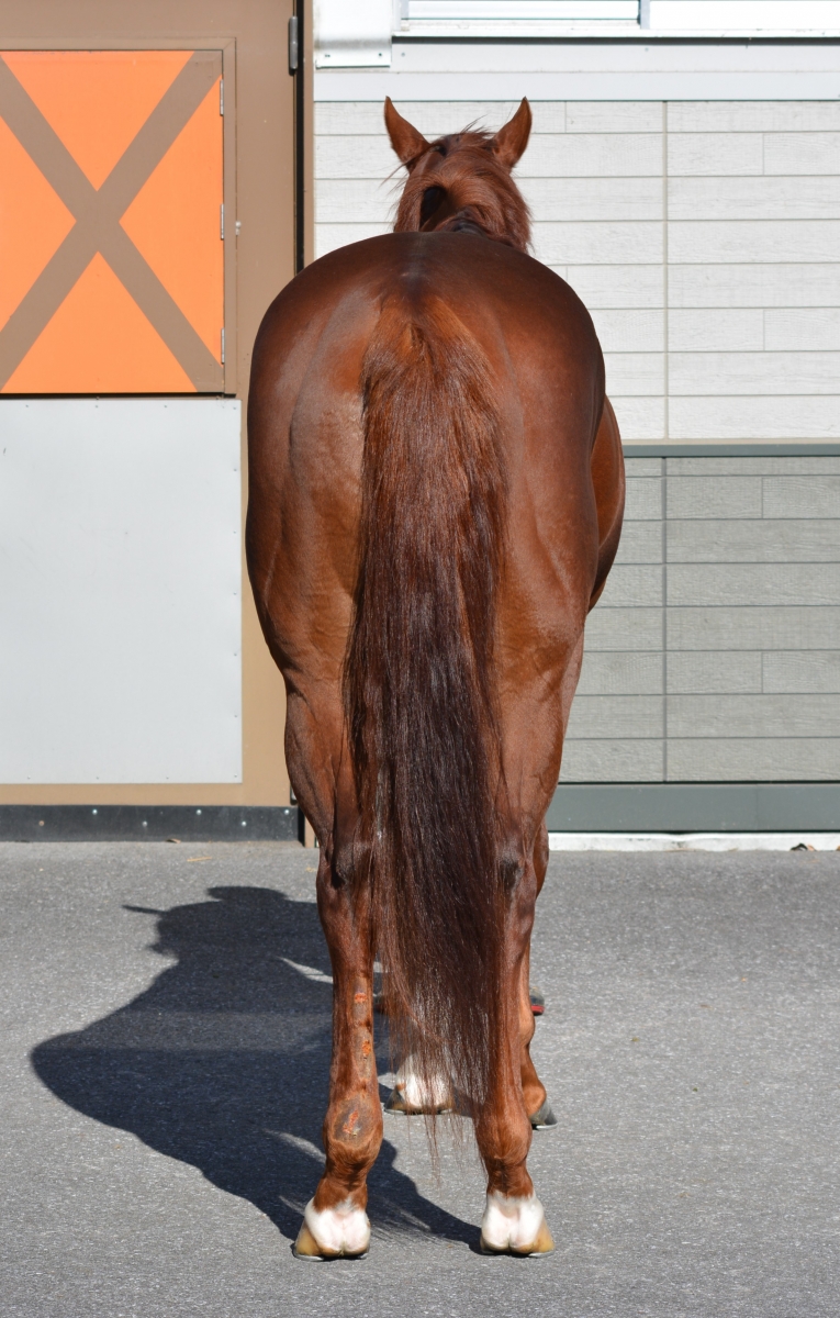 さすがに3勝クラスに入ると甘くはありませんが、それでも昇級初戦のなにわSでは0秒5差の5着。今年4月の陽春Sでは0秒3差の5着とクラス通用のメドを立てています。前走の安芸Sは9着に敗れていますが、約5カ月半ぶりの実戦でプラス16kgと少し馬体に余裕もあったのが影響した印象。レース中に後ろの馬に引っ掛けられて左トモに浅い外傷(添付の画像をご確認ください)も負っており、酌量の余地は十分にありそうです。