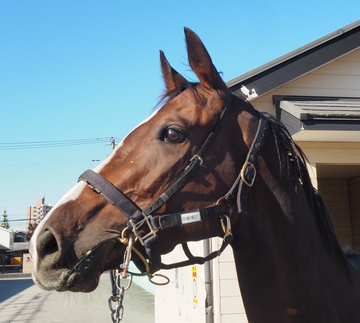 成績に直結してはいませんが、状態面は徐々に良化中です。テンションが高くムキになり易い点は血統からくるもの。もう少し落ち着きが増してくればレース内容がガラリと変わってくるはずです。移籍緒戦の中間追い切りで左前深管部を気にする素振りがありましたが、現状は競走に支障はありません。(川崎競馬・佐藤博紀調教師)