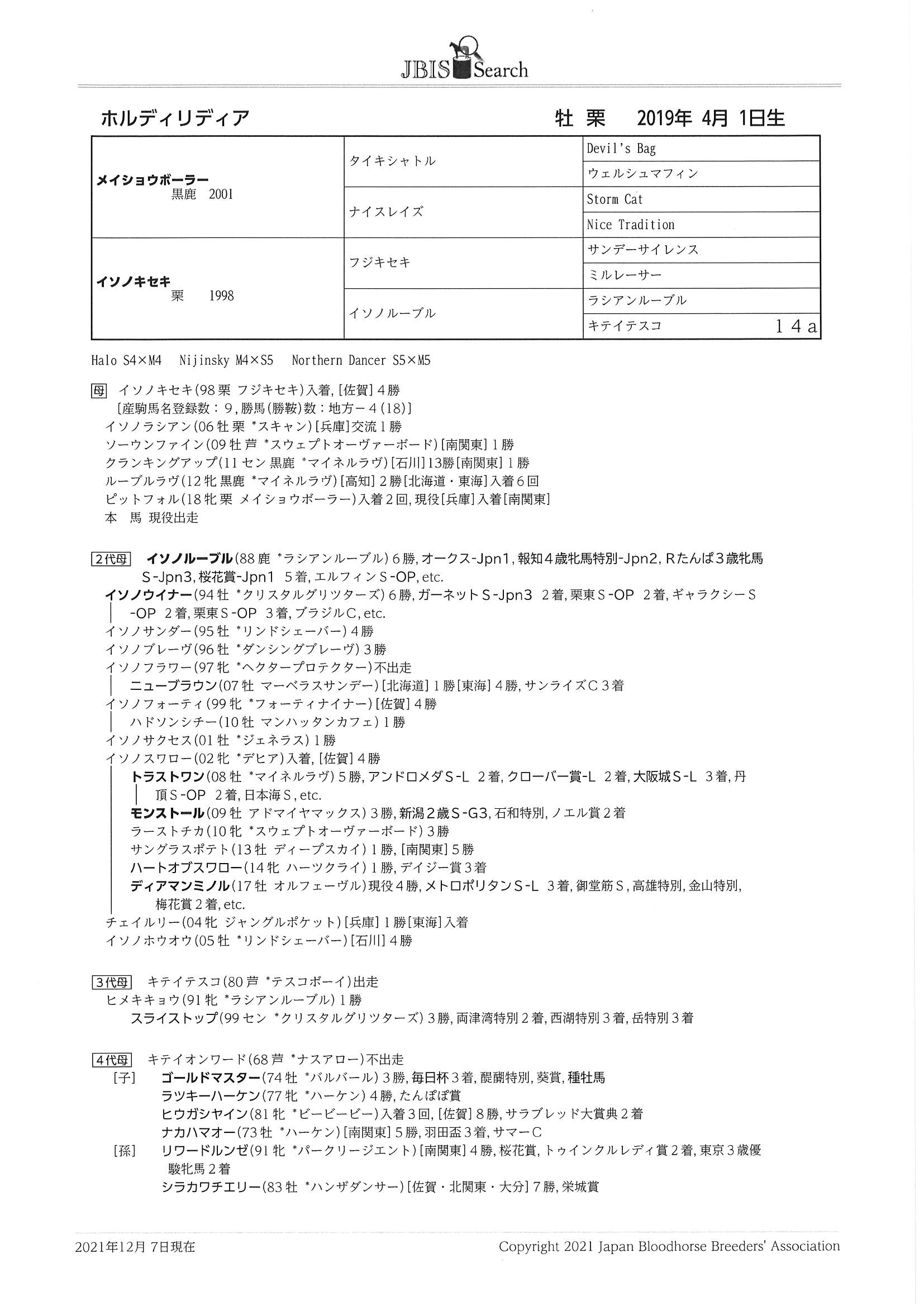 ホルディリディア Holdiridia 牡 栗毛 2019年4月1日生 2歳