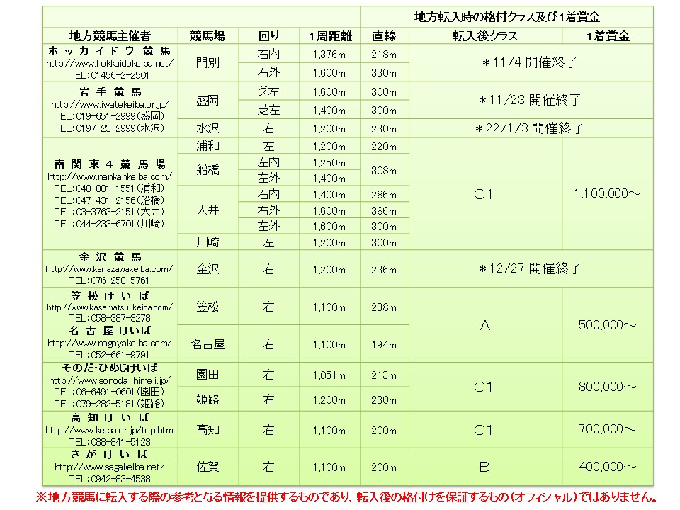 ※南関東4競馬場への転入が可能です。