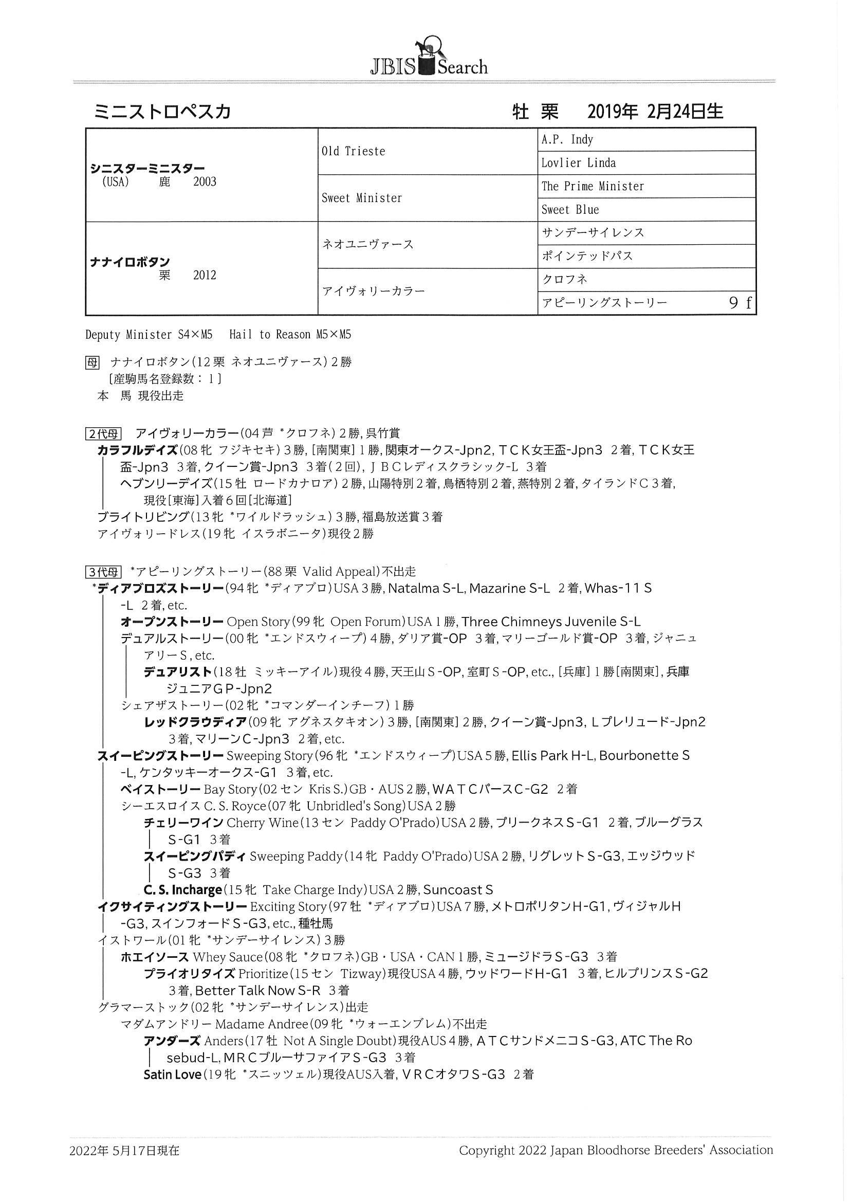 ミニストロペスカ Ministro Pesca 牡 栗毛 2019年2月24日生 3歳