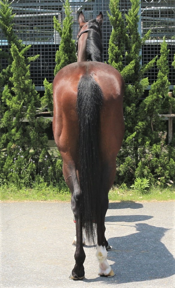 また脚元ですが、左前にソエが出ているようですが、ずっとこの状態でレースを使ってきましたので、特に大きな問題ではなさそうです。そのほかではかぶるクセがあったり、しりっぱねをすることもありますので、少し気を付けた方がいいと思います。