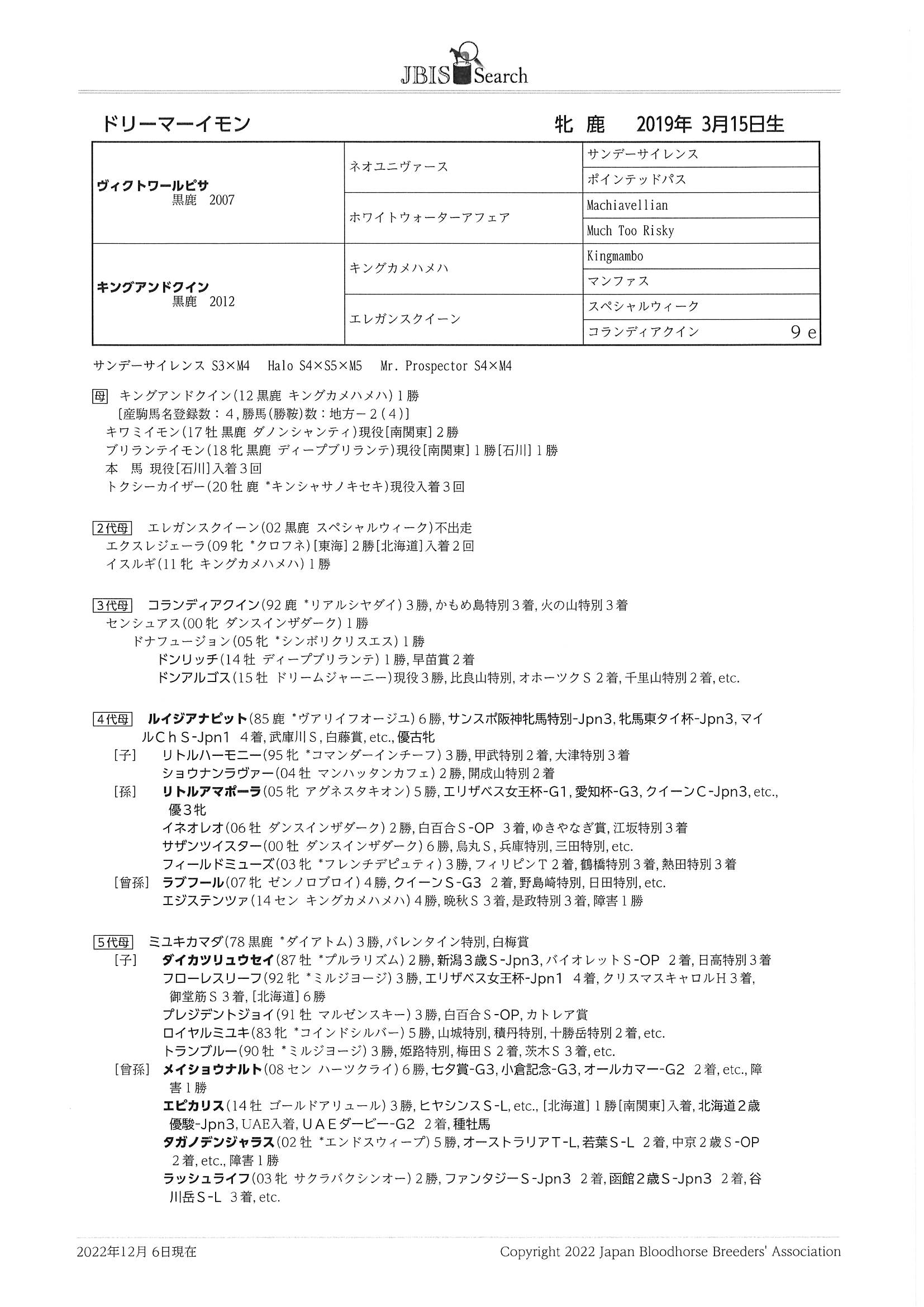 ドリーマーイモン Dreamer Imon 牝 鹿毛 2019年3月15日生 3歳