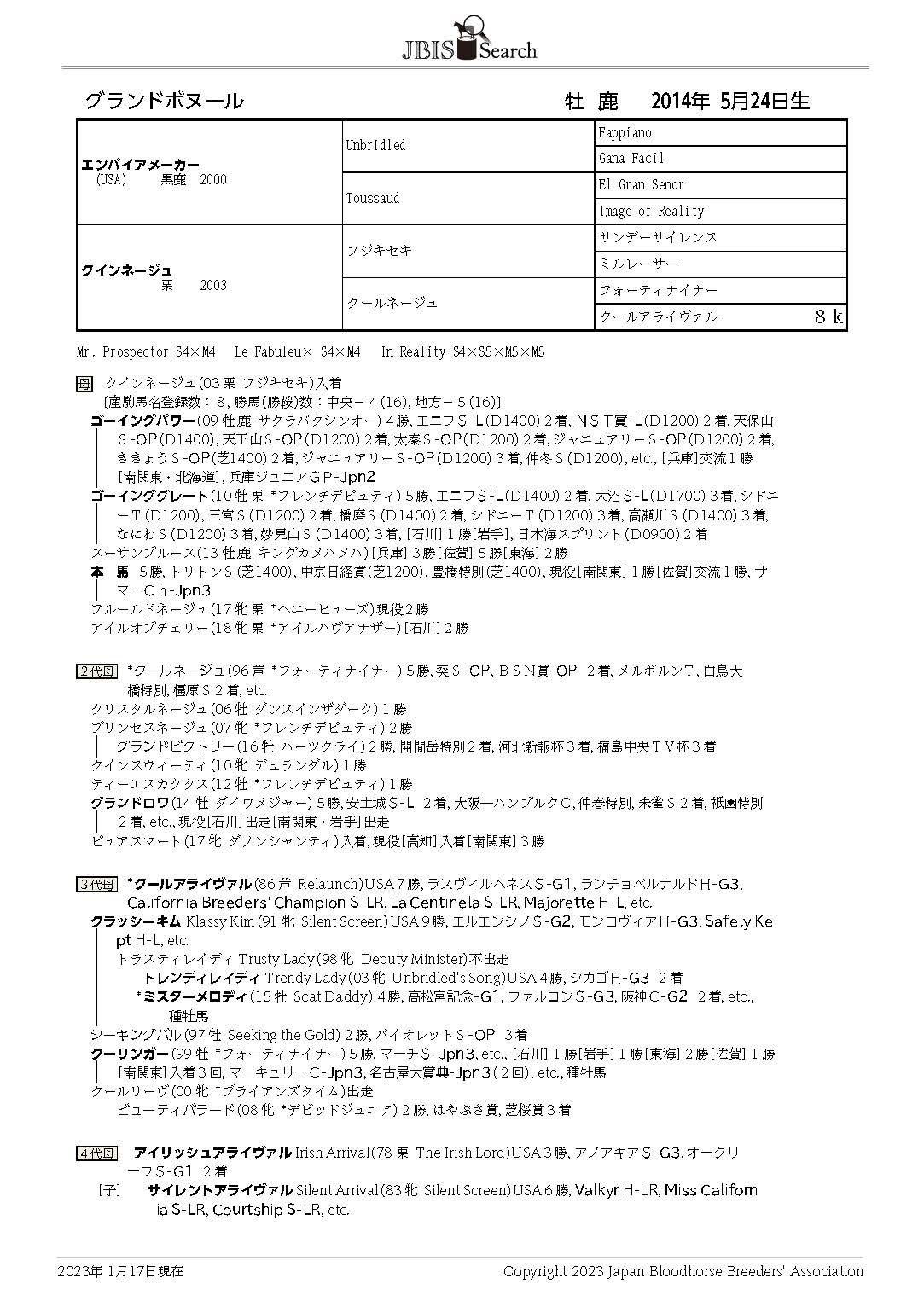 グランドボヌール Grand Bonheur 牡 鹿毛 2014年5月24日生 9歳
