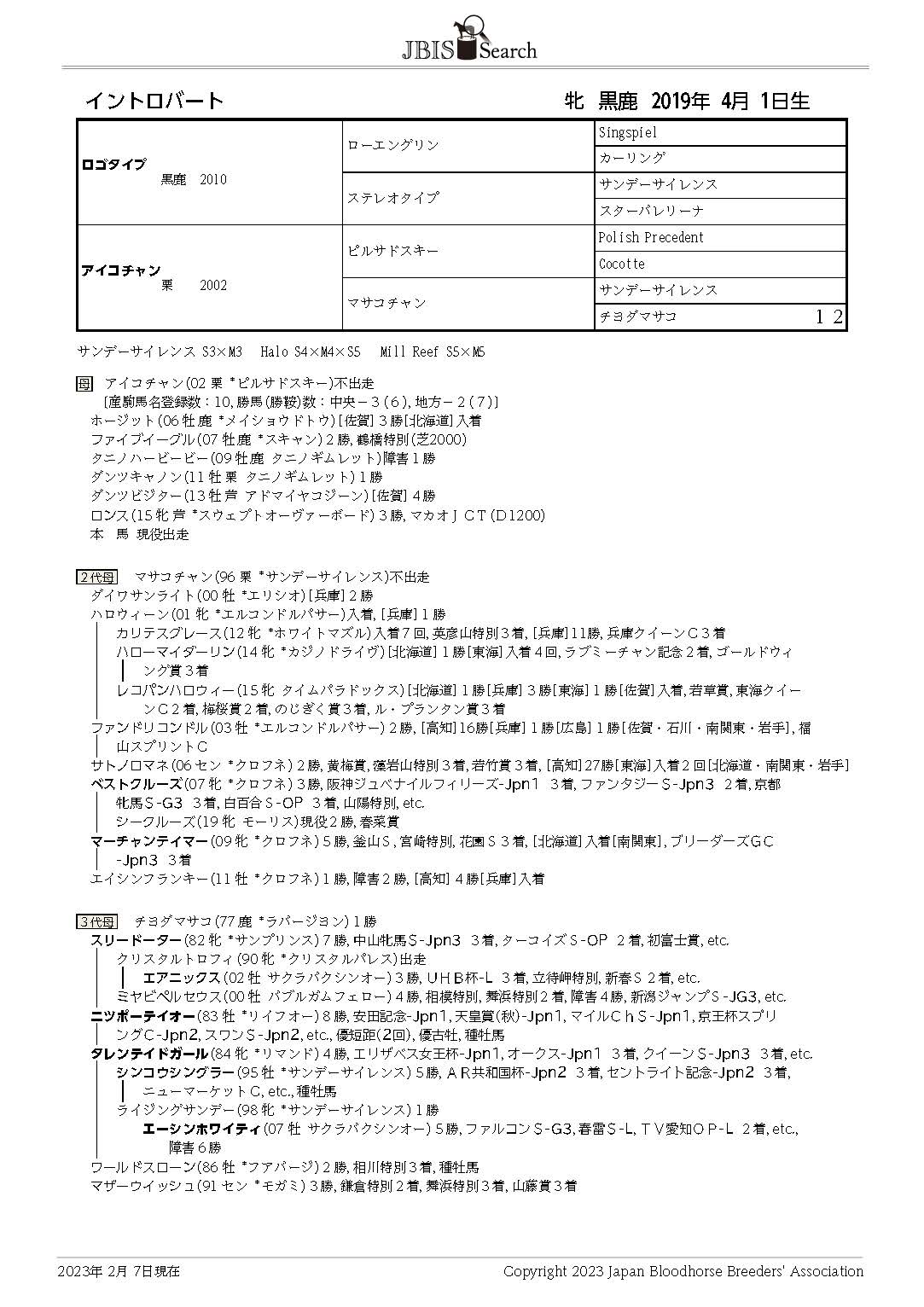 イントロバート Introvert 牝 黒鹿毛 2019年4月1日生 4歳