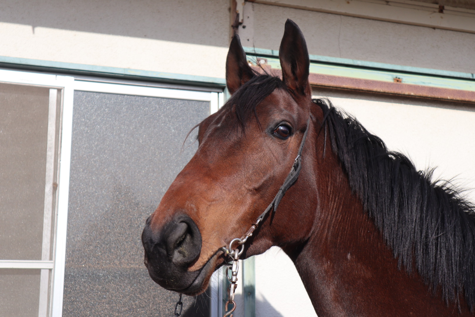 性格は素直で、トモに緩さは残っていますが、一戦ごとに馬はしっかりしてきました。芝に替わってから成績が上がってきた印象もありますが、以前よりも力をつけていますし、障害を経験した効果も見込める今ならば、ダートでも戦っていけるでしょう。1勝クラスでも僅差の競馬をした能力の持ち主ですし、相手関係次第では活躍できると思います。