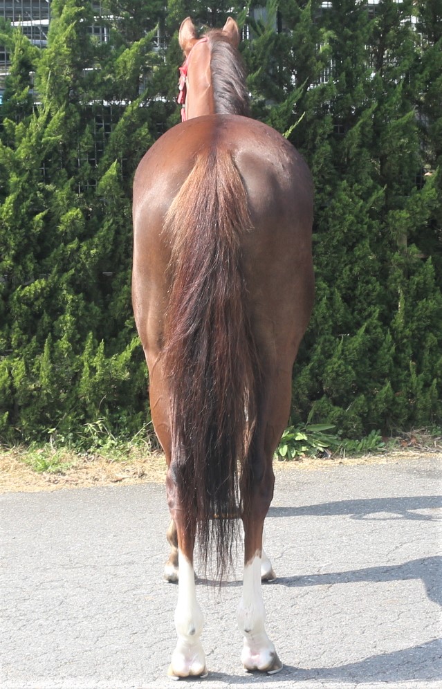 初戦を叩いたあと、調教の雰囲気はだいぶ上向いていましたが、レースぶりは大きく変わっておらず、まだ競馬を理解できていないような感じもあります。キャリアを積みながら、心身の成長を待ちたいところです。なお、1歳の初期騎乗運動中に右腸骨翼骨折があり、保存療法で完治させた経緯があります。その分も成長が遅めなところがありますので、先々にご期待いただければと思います。