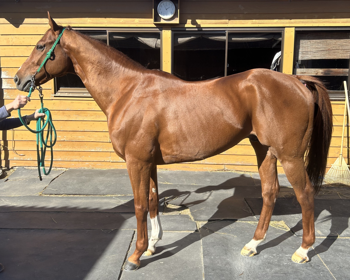 年度代表馬エフフォーリアの半弟ヴァンガーズハート号(セン6、父ハービンジャー)、G3・葵S3着馬ブレスレスリーの半弟イナフセド号(牡5、父モーリス)が出品されました。 まずヴァンガーズハート号は、半兄に2021年の年度代表馬エフフォーリア、半妹にG1・桜花賞3着馬ペリファーニアや、今年のG1・秋華賞4着馬ジョスランがおり、いとこにも年度代表馬アドマイヤムーン、そして曽祖母には愛1000ギニー馬Katies、近親に女傑ヒシアマゾンなどがいる超良血馬。3歳夏に札幌で初勝利を飾ったほか、1勝クラスでも2着3回、3着2回と好走しています。これまでダート戦の経験はありませんが、520㎏を超える大きな馬体の持ち主で、1600mでも先行できるスピードを備えており、新天地での活躍を予感させています。 一方、イナフセド号は、4歳時に兵庫で5戦3勝、2着1回、3着1回の好成績。中央復帰を果たした後もダートを中心に経験を積み、今年5月10日の新潟・4歳以上1勝クラス(ダ1200m)では、卓越したスピード能力を遺憾なく発揮し、2馬身半差の逃げ切り勝ちで2勝クラスへ昇級しました。母ハッシュは邁進特別などJRA4勝の快速馬で、半姉ブレスレスリーはG3・葵Sで3着に好走した実力馬。また、半妹のスノーサイレンスは、10月19日の新潟・3歳以上1勝クラス(ダ1200m)に勝利し、スプリント戦に強い母系として知られています。こちらも新天地でさらなる活躍が期待できそうです。 なお、この他にも繁殖牝馬5頭も出品。G1馬ジャックドールの仔を受胎している馬もおりますので、ぜひご注目ください!
